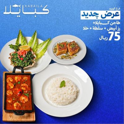 طاجن كبايلا +رز ابيض + سلطة + حلا