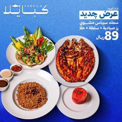 سمك سيباس مشوي + رز صيدية + سلطة + حلا
